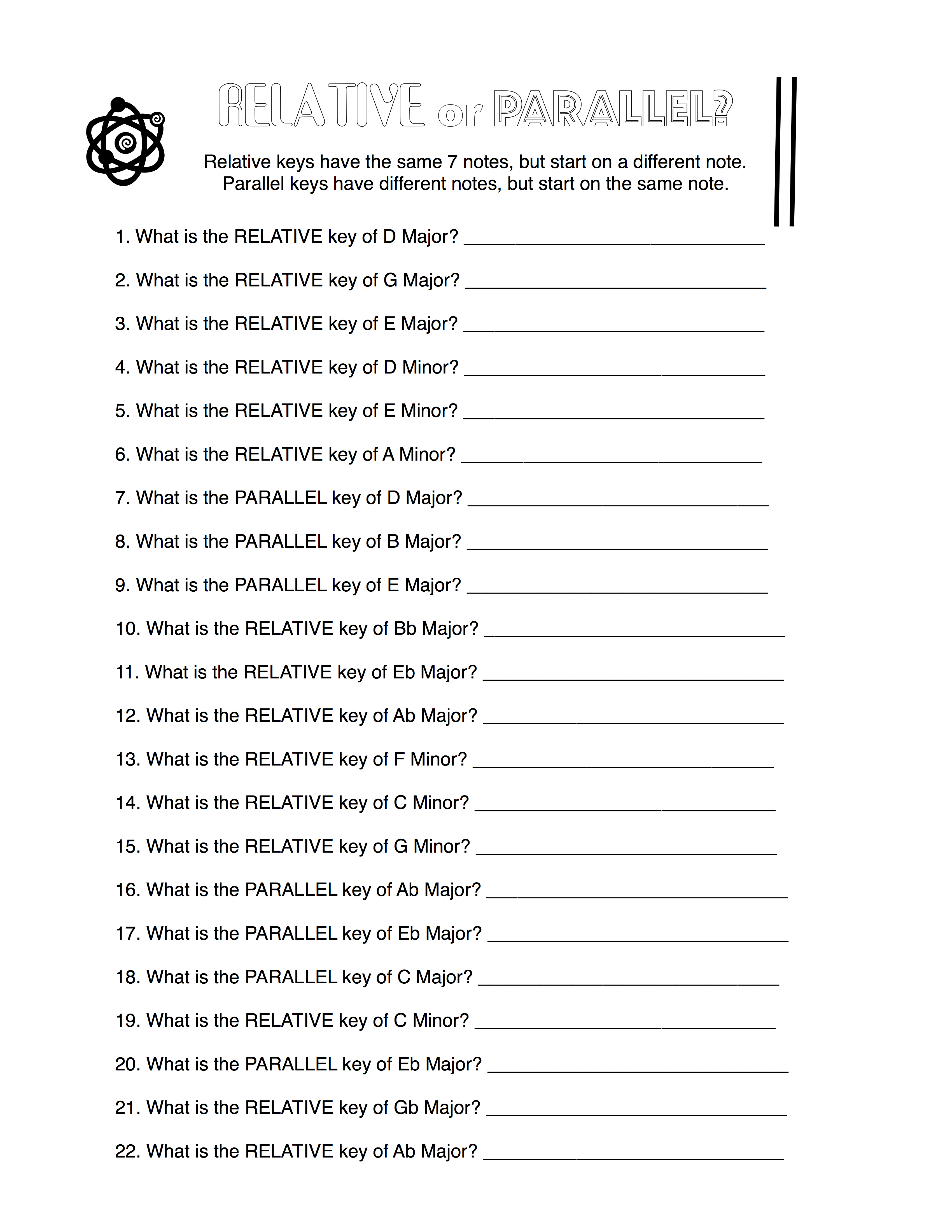A single-page quiz to reinforce the difference between parallel and relative keys.